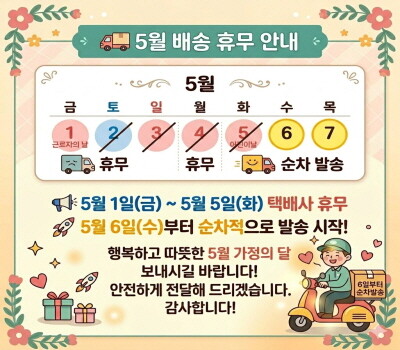4. 해외배송 특성상 주문접수후 배송상태가 배송준비중으로 넘어간 경우 해외에서 국내로의 배송이 이루어지고 있다는 뜻입니다. 따라서 배송준비중으로 배송상태가 넘어간 경우 취소및 반품이 불가하므로 이점 양해 부탁드립니다.