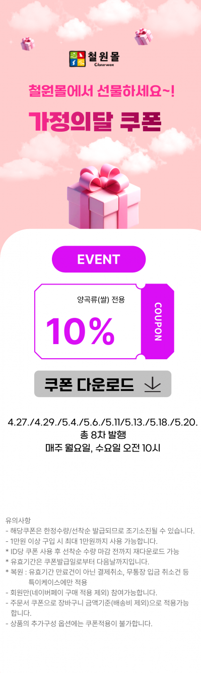 2026 철원몰 가정의달 이벤트 시작합니다!(양곡제외)...